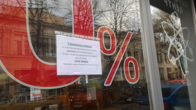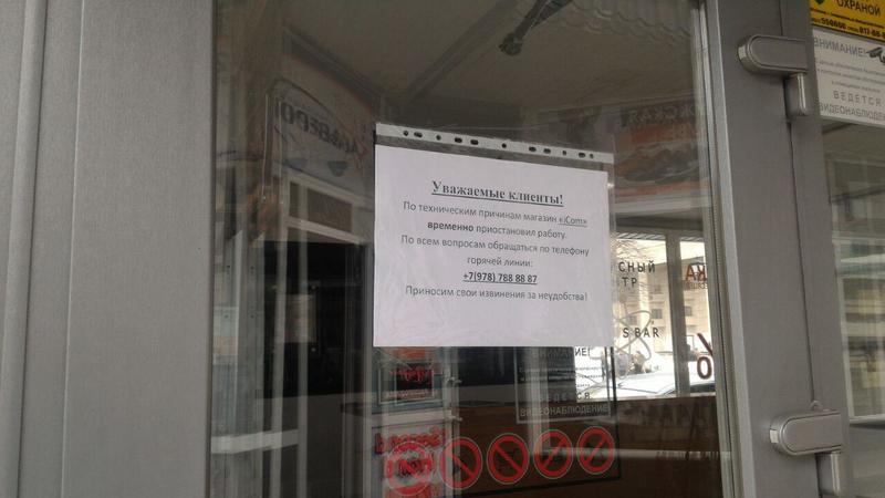 Сутра на дверях закрытого магазина, из которого вывезено практически все оборудование и мебель, появились пломбы Отдела надзорной деятельности по Симферополю Управления надзорной деятельности и профилактической работы ГУ МЧС России по Республике Крым. При этом на магазине размещено объявление о том, что магазин iCom временно приостановил работу по техническим причинам. Клиентам магазина предлагают обратиться по телефону «горячей линии». Магазин iCom расположен на перекрестке проспекта Кирова и улицы Горького в центре крымской столицы в 100 метрах от здания республиканского правительства. Ранее ФСБ сообщила о возбуждении уголовного дела в отношении одного из организаторов блокады, бывшего вице-премьера Крыма, владельца телеканала АТР Ленура Ислямова. Обыски прошли в офисе подконтрольной ему транспортной компании «СимСитиТранс». Кроме того, Банк России приостановил лицензию принадлежащего Ислямову «Джаст Банка». В эфире АТR, вещающего на Украине, Ислямов заявил о незаконности действий российских правоохранительных органов. 3 декабря прокурор Крыма Наталья Поклонская сообщила об аресте судом имущества Ленура Ислямова на территории полуострова. 4 декабря пресс-служба прокуратуры Крыма сообщила о том, что предприятие «СимСитиТранс» Ислямова оштрафовано на 850 тыс руб за многочисленные нарушения в сфере пассажирских перевозок, в том числе связанные с невыполнением требований по обеспечению безопасности дорожного движения.