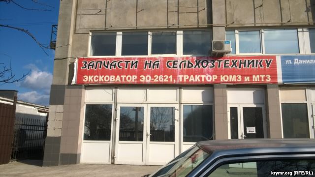 Магазин в Симферополе продает запчасти для «экскОваторов». Огромная вывеска, похоже, не смущает ни владельцев, ни покупателей. Другой магазин торгует военной «экипЕровкой».
