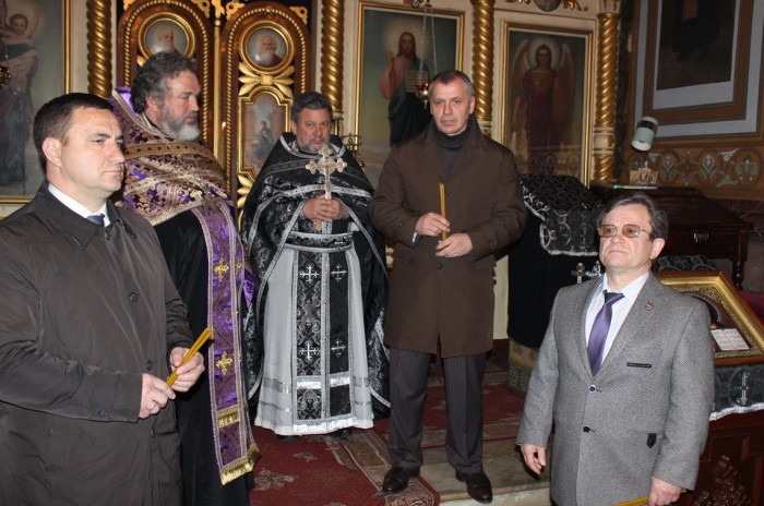 Вместе с главой крымского парламента в богослужении приняли участие глава муниципального образования городской округ Ялта, председатель Ялтинского городского совета Валерий Косарев и глава администрации Ялты Андрей Ростенко, депутат Госсовета РК Валерий Коваленко. Приветствуя гостей, отец Адам напомнил, что великий князь Александр Невский – образец воина, православного человека для руководителей страны, Республики и всех нас. Отец Адам вручил на память Владимиру Константинову икону с изображением князя, а также книги о великих святых России и о храмах Большой Ялты. «Пусть господь помогает вам во всех добрых начинаниях», - пожелал он главе крымского парламента. Со своей стороны Председатель Госсовета выразил уверенность, что все планы крымчан обязательно сбудутся. «Мы сделали благое дело – вернули Крым России, сами выбрали свою собственную судьбу», - сказал он, подчеркнув, что сделать это удалось быстро и решительно. По словам Константинова, это позволило избавить наш полуостров от гражданской войны, от разрушения и неминуемого зла, которое сегодня охватило Украину. «Я думаю, что и там народ переболеет и вернется к нашему истинному православию, в родной дом, русский мир», - добавил он и поздравил прихожан с наступающим праздником Пасхи, пожелав им здоровья и счастья. Источник:Новости Крыма |