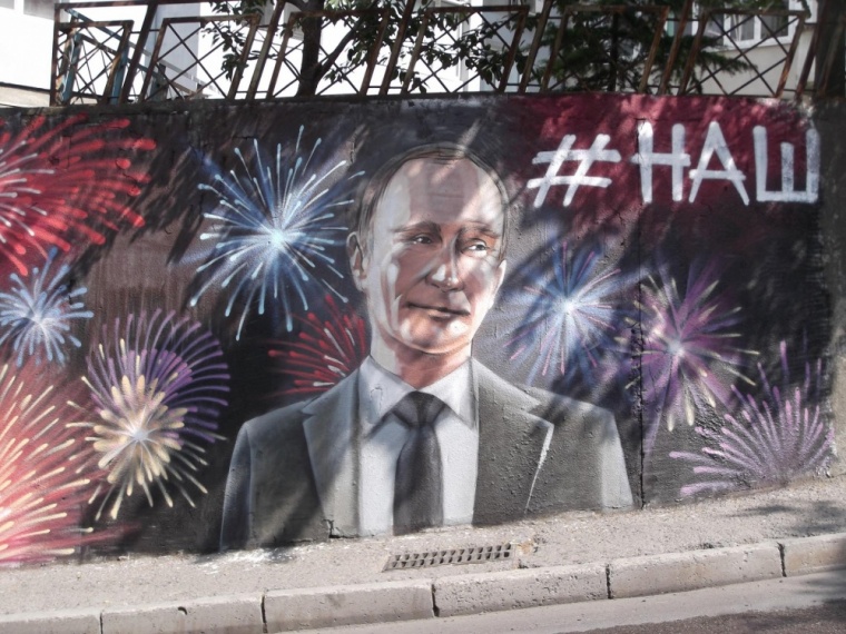 Больше всего портретов Владимира Путина, нарисованных на заборах и зданиях, оказалось в Симферополе и Ялте. Сообщения о новых и новых рисунках то и дело появляются в СМИ, а полную коллекцию графических изображений можно найти в социальных сетях по хэштегу #НАШ.