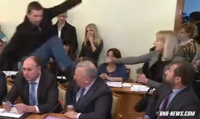 Народный депутат Украины Владимир Парасюк ударил ногой в голову заместителя начальника Главного управления по борьбе с коррупцией и организованной преступностью Службы безопасности Украины Василия Писного. Это произошло во время прямой телетрансляции на заседании комитета во время рассмотрения вопроса об обращении Парасюка о назначении Писного на соответствующую должность. Парасюк разозлился на слова, что Писной сделал для Евромайдана больше, чем Парасюк. "Я не жалею о том, что я сделал, потому что этот человек крышует контрабанду во Львовской области, он сидел в СИЗО за крышевание спиртовых заводов. Каждый львовянин знает, кто такой Василий Писной. И он будет говорить, что сделал что-то для Майдана? Он даже там не был" - пояснил свой поступок журналистам Парасюк. Источник: dnr-news.com |