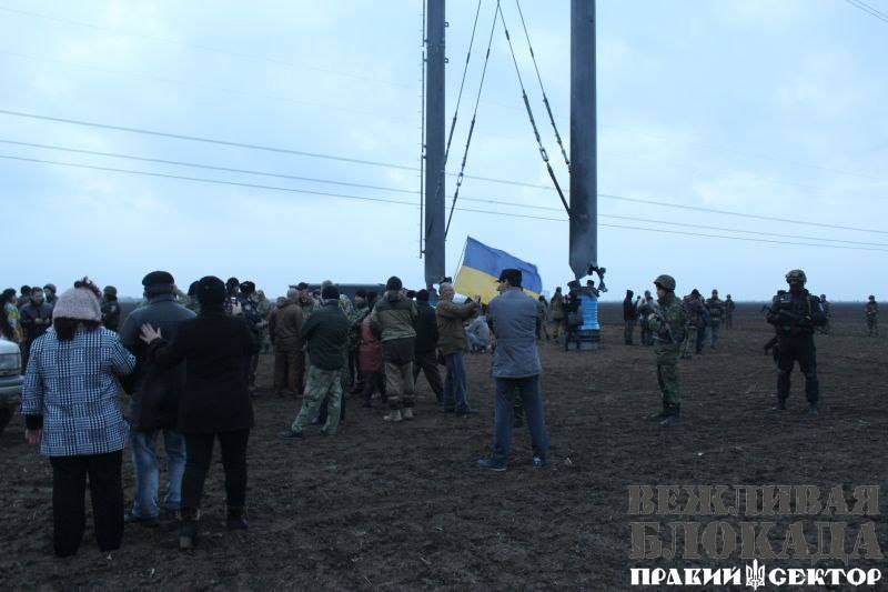 Пресс-служба «Правого сектора» сообщает, что режим Петра Порошенко готовит арест всех участников блокады Крыма, которые сегодня препятствовали энергетикам, пытавшимся восстановить подорванную накануне электроопору на границе с полуостровом. «Сейчас в Чаплинке возле поврежденной ЛЭП находятся около 100 вооруженных нацгвардейцев… Продолжается противостояние между ними и активистами Блокады Крыма: крымскими татарами, представителями «Меджлиса», бойцами ДУК ПС и других добровольческих батальонов.