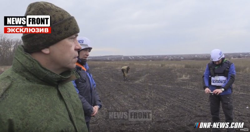 На видео запечатлен факт снайперского обстрела со стороны ВСУ по заместителю командующего корпусом Минобороны ДНР Эдуарда Басурина и мониторинговой группе ОБС Источник: dnr-news.com |