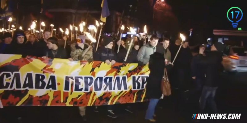 В Киеве проходит факельное шествие, посвященное 98-й годовщине боя под Крутами, в котором украинская армия потерпела поражение. Источник: dnr-news.com |