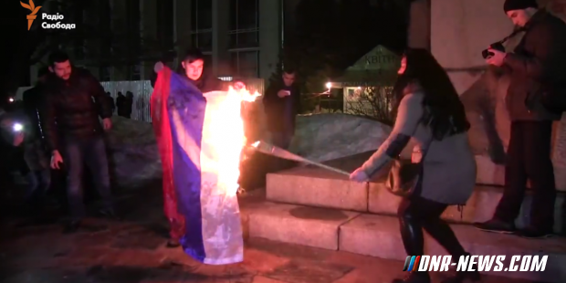 В Черкассах во время факельного марша сожгли флаг РФ