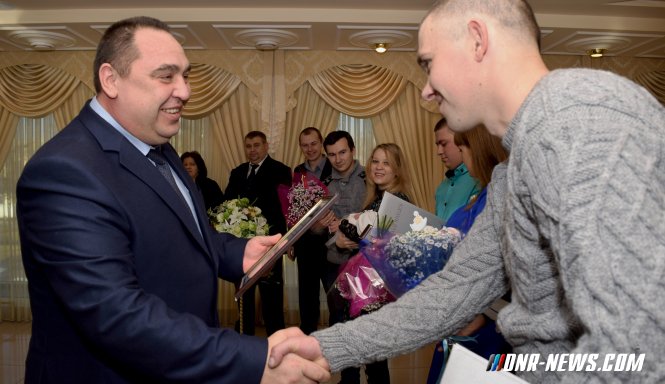 Первые свидетельства о рождении республиканского образца вручил сегодня родителям новорожденных Глава ЛНР Игорь Плотницкий. В торжественном мероприятии приняли участие супруга Главы ЛНР Лариса Плотницкая, руководитель Администрации Главы ЛНР Ирина Тейцман, Министр юстиции ЛНР Сергей Козьяков, родственники и друзья родителей маленьких граждан Республики.
