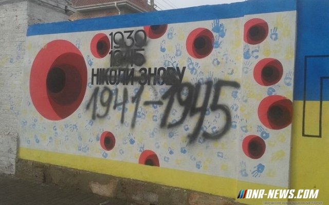 В Геническе местные жители высказали свое мнение по поводу отрицания Киевом участия украинского народа в Великой Отечественной войне, которая по настоянию нынешних властей называется исключительно "Вторая мировая". Ночью неизвестные расписали "Стену памяти жертв Второй мировой войны", которая находится напротив Генического отделения полиции. "Стена памяти" была открыта 8 мая 2015 года "в честь победы над нацизмом 1939-1945 годов". На стене изображены красные маки, которые теперь, с подачи киевских властей, являются символом участия Украины в борьбе против фашизма. Также на стене изображены отпечатки рук в цветах государственного флага Украины. Как стало известно, власти Геническа заявили о том, что в ближайшее время "Стена памяти" будет восстановлена. Источник: dnr-news.com |