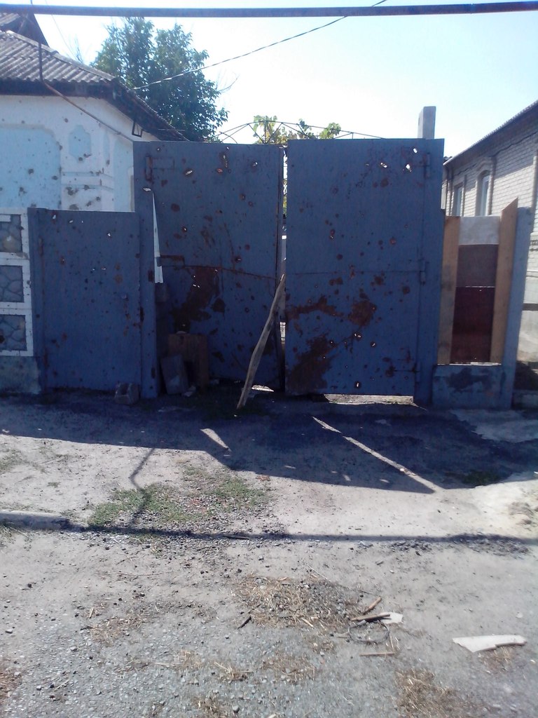 Приветствую всех, друзья! Спасибо за письма и Вашу поддержку! У меня все нормально, иду на поправку, как говорят врачи! Есть немного фантомных болей, но это нормально. У Пастора тоже все нормально. Были на той улице на окраине Старобешево и том месте где все произошло, искал АКБ от камеры и флешку, но нашел только свою кепку. Прошелся по тому пути, как я выходил - откуда силы были выламывать штакетины с заборов и переваливаться через сетки Рабица между огородами, я не знаю, но как то я это делал. Путь довольно долгий - шесть огородов прошел. Видел женщину, что дала мне полотенце, что бы перевязаться и мужчину, что меня вывез из поселка на трассу. Спасибо им большое! Я же сам перевязывался и выходил из боя, как и мой друг. Бой был сильным. Вот эти места. Разрушенный дом напротив этих ворот, что на фото. В сад этого дома за воротами я откатился, когда начался этот кошмар. Жаль, что в разрушенном доме погибли мирные люди. Это паскудная война, которую ведут одурманенная армия и продажные зверьки Порошенко против собственного народа. По другому я их не могу называть...