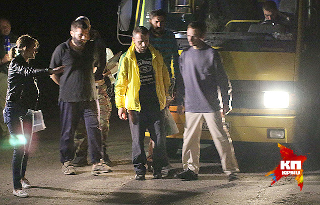 — Людей, которые находились в разных местах. Есть граждане Украины, есть россияне. — Как идет взаимодействие по обмену? — У нас нормальные взаимоотношения. Есть переговорный процесс, мы идем навстречу друг другу и выполняем то, что обещали. — Почему все время переносится время обмена? — Есть разные причины. Есть дополнительные списки, которые доходят до нас. И нам надо время, поэтому мы переносим обмен. Но сейчас дело пойдет очень быстро. После коротких переговоров определяется порядок обмена. Из автобусов выводят по пять человек и «челноком» ведут от автобуса к автобусу. Первыми идут украинские солдаты. Они напряжены под прожекторами камер. Даже дойдя до своих, они все еще замкнуты и неразговорчивы.