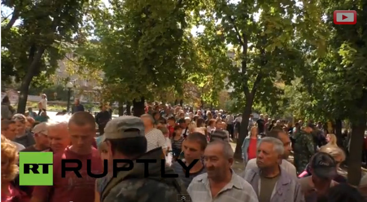 ЛНР. В Луганске выстроились очереди за российской гуманитарной помощью (видео)