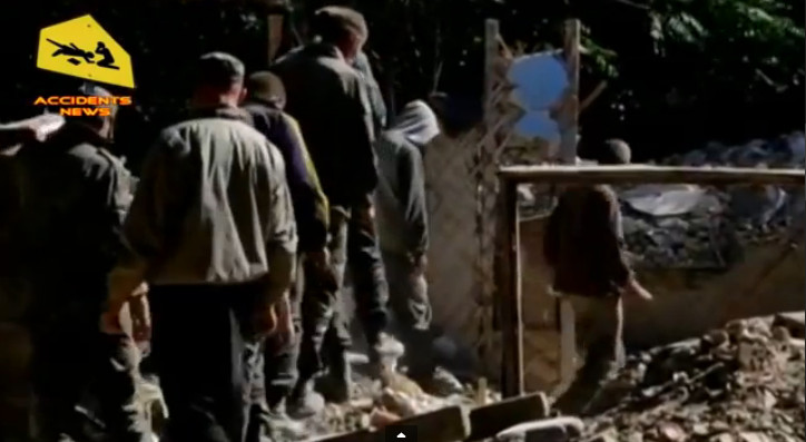 ![]() Украина, Донецкая обл. город Снежное. Украинские военнопленные разбирают завалы домов пострадавших от артиллерийских обстрелов в зоне проведения антитеррористической операции.