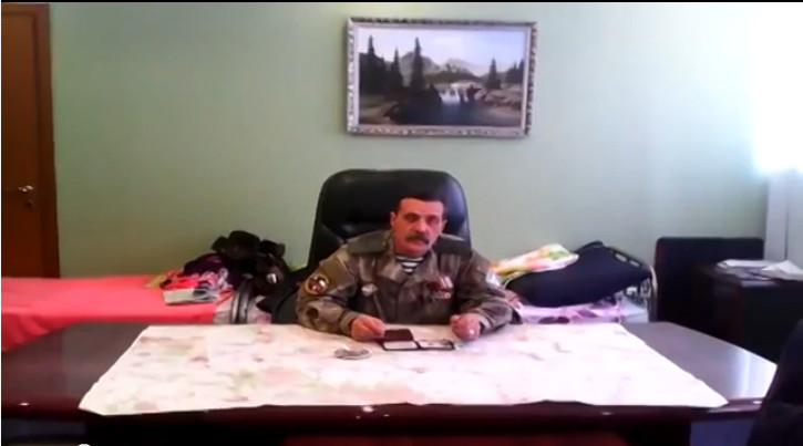 ![]() Украина, Донецк, Горловка. Командир Народного Ополчения Горловки Игорь Безлер передает привет министру обороны Украины Валерию Гелетею