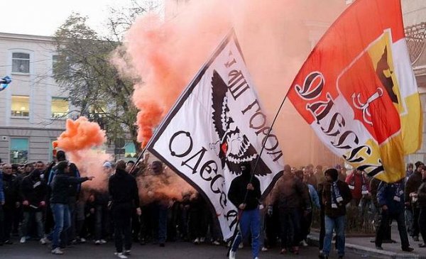 Они были кошмаром прошлых «майданов». Сине-чёрная лавина под Андреевскими флагами сметала на своём пути всё, что могло хоть как-то ассоциироваться с понятиями «оранжевое», «свидомое» и даже просто «украинское». Это не удивительно. Для одесских фанатов всегда было свойственно противопоставлять себя Киеву. Считать украинство хуторянством. Подчёркивать интернациональную самобытность Одессы и её международный статус. Недаром основными символами одесских фан-клубов были Андреевский стяг, флаг ВМС СССР и пресловутая «имперка», традиционно вывешиваемая перед началом футбольного матча. Архивы телекомпаний и, вероятно, СБУ хранят кадры, как врассыпную, бросая наглядную агитацию, по Одессе разбегались «борцы за демократию» от одного слуха «фанаты идут». Ударная сила Антимайдана с лицами закрытыми сине-чёрными шарфами.