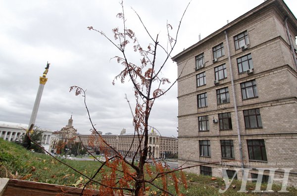 Символично - На Майдане Незалежности засохло Дерево Мира