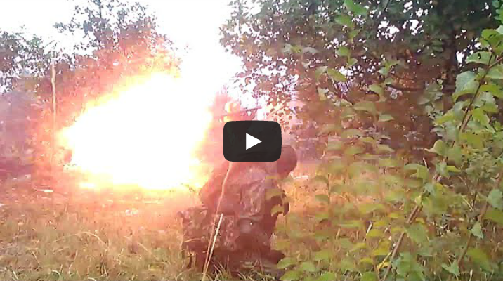 Гранатометная атака ополчения на позиции карателей в аэропорту. Видео ополченцев
