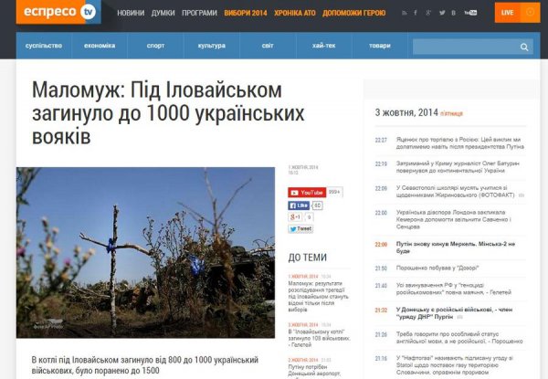 Пётр Порошенко, выступая сегодня в Львовском национальном университете, призвал не распространять «ФСБшную ложь» о тысяче погибших под Иловайском. Однако данная информация прозвучала в эфире телеканала «Еспрессо», который абсолютно лоялен новой киевской власти. А человеком, который публично озвучил потери, стал бывший глава внешней разведки Украины. «Это ложь ФСБ о тысяче погибших возле Иловайска отправьте в Кремль и не пачкайте нашу армию», - заявил Пётр Порошенко, передаёт УНН. По его словам, всего на востоке Украины погибло 967 человек, в их число входят и военные, и пограничники, и бойцы Нацгвардии и СБУ. Стоит отметить, что информация о тысяче погибших военных украинской армии была озвучена 1 октября в эфире телеканала «Еспрессо» бывшим главой Службы внешней разведки Украины Николаем Маломужем. «С учетом той информации, которую нам предоставляют представители батальонов непосредственно с места событий, которые были снаружи Иловайского котла или в окружении, погибло 800-1000 украинских военных, до 1500 были ранены», - заявил Маломуж в эфире украинского телеканала «Еспрессо». Источник: dnr-news.com |