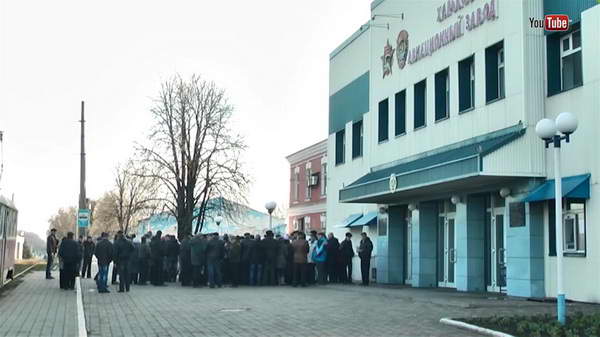 Как сообщает LifeNews, около ста работников Харьковского авиационного завода устроили акцию протеста возле стен собственного предприятия. Бунт работников связан с задолженностью по заработной плате, которая длится уже восемь месяцев. К слову, всего у завода накопилось долгов по зарплате на сумму около 43 миллионов гривен. — С августа месяца нам не платят зарплату. С декабря месяца мы сидим дома. Я не плачу ни за квартиру, ни за что. У меня просто нет денег. Мне не на что жить, — жалуется сотрудница завода, принявшая участие в акции. — Мы сейчас сидим и просто не знаем, платят нам или не платят, начисляют хоть какие-то проценты, мы вообще ничего не знаем. У меня возраст 52-й год, куда я ещё идти должна? Меня никуда не возьмут, у нас работы нигде нет. Через какое-то время к протестующим вышел первый заместитель директора департамента инновационного развития промышленности Георгий Калабин. Чиновник заявил, что все вопросы по задолженности должны быть адресованы к директору предприятия, которого, к слову, в феврале уволили. Также г-н Калабин заявил, что сотрудники учреждения митингуют «безосновательно и незаконно». И передал слово для объяснений и.о. директора завода Леонтию Гонтарю. — У нас заморожены несколько миллионов в банке, но мы не можем никаких вопросов решить. Мы ждём денег от основного заказчика, других денег у нас пока нет, — пояснил ситуацию Гонтарь. В понедельник, 6 апреля, работники завода намерены продолжить акцию протеста и перекрыть Сумскую улицу, расположенную перед проходной предприятия. На иллюстрации: скриншот видеосюжета LifeNews. Рубрики: