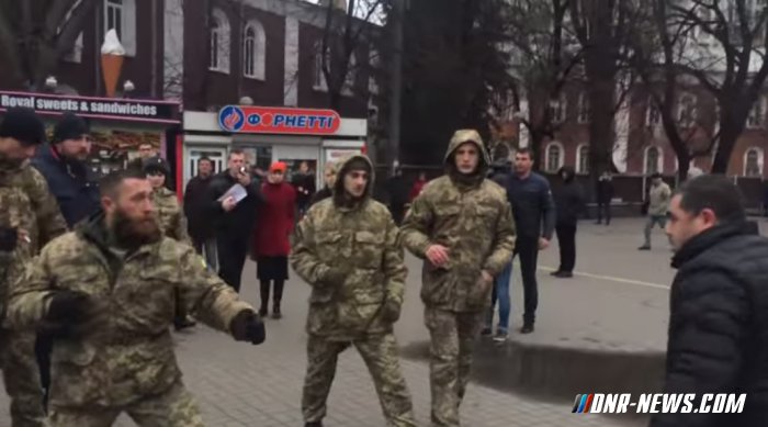 Олег Голтвянский, некий "Максим Сержант" (https://vk.com/idxyumycopam) и неизвестный (для нас) боец батальона "Печерск". Но это и не важно. Вот здесь он выступает в роли для подражания учащимся 267-й кевской гимназии: