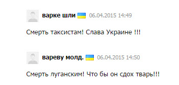 Открываю Одесский сайт 048.ua читаю новость: В Одессе пропал таксист из Луганской области УУР ГУМВД Украины в Одесской области разыскивает Коваленко Эдуарда Леонидовича, 1968 г.р., жителя Луганской области. «Уважаемые граждане! Если вам известно местонахождение разыскиваемого, просьба сообщить по телефонам: 779-42-49, 779-42-07, 102, или обратиться в ближайшее отделение милиции», - сказано в сообщении милиции. То есть это новость о пропаже таксиста, который был жителем Луганска. Нет ни слова о его политических убеждениях. Просто пропал человек. Вижу комменты: