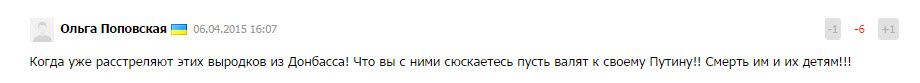 Еще одна статья на том же сайте: Переселенцы из Донбасса: «Мы скучаем по дому» В статье рассказывается о беженцах с Донбасса, которые приехали во Львов. Все они свидомые украинские патриоты, Львов им нравится, но скучают по дому. Да и проблемы с жильем, местные жители не хотят сдавать квартиры донецким. Коммент к статье: