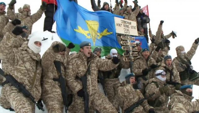 7 апреля сто десантников из России, Белоруссии и Таджикистана впервые в историивысадились на дрейфующие льды Северного ледовитого океана близ полюса. Они прыгнули с парашютом из самолетов Ан-74, когда за бортом было минус 75 по Цельсию. У каждого — снаряжение весом до 50 килограммов. Далее двинулись по снежной пустыне на снегоступах и лыжах. В пути помогли настоящие ездовые собаки. Ил-76 взял курс на Северный полюс. На борту — сотня десантников. Скоро самолет будет возле нулевого меридиана. Гул двигателей в условиях ограниченной видимости — сигнал о приближении десанта. В небо взмывает метеозонд, чтобы выяснить скорость и направление ветра. В ту же секунду на площадке приземления зажигают сигнальные огни. Это — ориентир для десантников. Сюда они направят свои парашюты. На высоте полторы тысячи метров самолет снижает скорость до 350 километров в час. Температура за бортом — минус 75 градусов! Десантники прыгают в полной боевой выкладке, с оружием. Кроме того, у каждого на груди — 50-килограммовый контейнер со всем необходимым для выживания в условиях экстремально низких температур. Это первая в истории международная гуманитарная поисково-спасательная экспедиция. В самой северной точке планеты — десантники из России, Белоруссии и Таджикистана. Майор Евгений Сергун — из Белоруссии. К прыжку в район Северного полюса готовился несколько месяцев. "Интересно, что условия новые. Мы готовились и будем решать поставленные задачи. Все нормально", — отметил военный. Полярный мороз больнее всего жалит южан — десантников из Таджикистана. "Мы — из солнечной страны. Впервые здесь. Холодно! Нам немножко сложновато участвовать в таких учениях", — признался Джамабил Ганджалов, начальник воздушно-десантной подготовки ВС Таджикистана. Лыжи и снегоступы — весомый аргумент в многокилометровом марш-броске по бескрайней ледяной пустыне. Первая группа десанта уходит за горизонт. Пес по кличке Черке — тоже участник этой арктической экспедиции. Его вместе с остальными ездовыми собаками привезли в район Северного полюса на другом самолете буквально за час до высадки десанта. "Это северные ездовые собаки: аляскинские маламуты, сибирские хаски, чукотские ездовые и самоеды. У нас четыре породы. Эти собаки прошли экспедицию вместе с Федором Конюховым и Виктором Смирновым", — сказал кинолог Дмитрий Новосельев. В упряжке Черке — самый титулованный. За 11 лет жизни он пробежал все арктическое побережье от Чукотки до Гренландии. На Северном полюсе уже десятый раз. Собачьи упряжки — самый универсальный вид транспорта в ледяной Арктике. Эти животные готовы тянуть нарты в любую непогоду, будь то сильный мороз, туман или метель. Сейчас в районе Северного полюса минус 25, и это самые комфортные условия для этих собак. Их, кстати, привезли из Карелии. Передовой дозор десанта вышел на опасный участок. Впереди — разлом. Весна! Лед трещит и ломается, выпуская на поверхность холодные воды Северного Ледовитого океана. Такая ловушка может стоить путешественнику жизни. Инструкторы внимательно следят за каждым бойцом. Самый сложный элемент учений. Важно внимательно действовать, предельно осторожно, потому что сразу же ледяная вода. Шаг за шагом десантники преодолевают этот опасный участок. Пока одни десантники штурмуют ледяные торосы, другие обустраивают базовый лагер