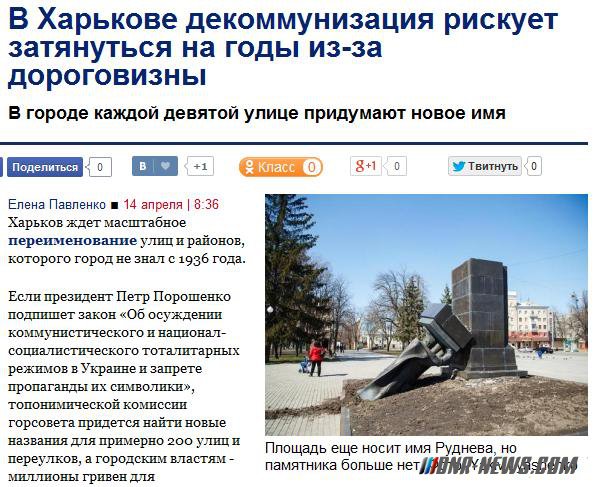 В Харькове декоммунизация рискует затянуться на годы из-за дороговизны (укроСМИ)