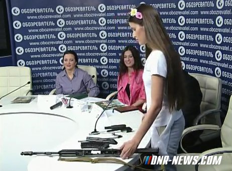 К пропаганде войны и милитаризации общества на Украине подключают даже индустрию красоты. На видео одна из финалисток конкурса «Королева Украины», киевлянка Мария Буланкова продемонстрировала журналистам свои, как заметили члены жюри «нестандартные таланты». Девушка на камеру собрала и разобрала на глазах у участников пресс-конференции макет автомата. Члены жюри сопровождали эти действия следующими комментариями: «Вот так вот. И не скажешь никогда. Хрупкая девушка, миловидная. И вдруг, такое хобби». «Я думаю, что все мужское население находится под надежной защитой, если наши девушки умеют делать подобные вещи. Не только борщи варить, красиво выглядеть, ухаживать за собой, хранить тепло домашнего очага, но они еще и способны оборонять». Источник: dnr-news.com |