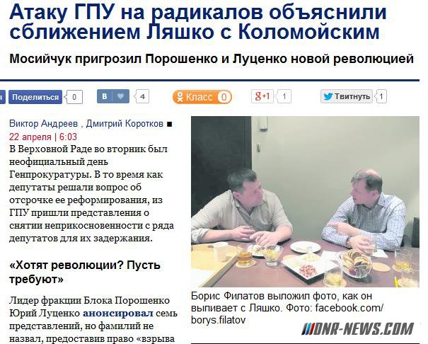 В Верховной Раде во вторник был неофициальный день Генпрокуратуры. В то время как депутаты решали вопрос об отсрочке ее реформирования, из ГПУ пришли представления о снятии неприкосновенности с ряда депутатов для их задержания. «Хотят революции? Пусть требуют» Лидер фракции Блока Порошенко Юрий Луценко анонсировал семь представлений, но фамилий не назвал, предоставив право «взрыва бомбы» генпрокурору. Источник «Вестей» в ГПУ сообщил, что среди тех, по кому подготовлены документы, — ранее уже называвшийся экс-комбат «Айдара» Сергей Мельничук (исключенный из фракции Радикальной партии Ляшко и вошедший в группу «Сила народа»), а также нардеп-радикал и экс-замкомбата «Азова» Игорь Мосийчук. Последнему, по словам источника, инкриминируют участие в ограблении. Эти же две фамилии назвал нам и источник в БПП: «Снятие неприкосновенности с Мельничука инициировал Ляшко, и Мосийчука хотят вынести на голосование в паре с ним, чтобы лишить Ляшко возможности протестовать — ведь и там, и там за уголовные преступления. Кстати, вместо Мельничука в «Силу народа» хотят взять Довгого, чтобы группа не распалась». Мосийчук, по его словам, узнал эту новость от «Вестей»: «Я сейчас лежу на больничной койке после операции и не знаю ни о каких представлениях. Если за мою критику в адрес ГПУ, они, конечно, могут быть. Или за мою деятельность в батальоне «Азов». Что ж, если президент и Луценко хотят получить новую революцию, пусть попробуют». Кандидаты на заклание Тем временем зам Ляшко в РПЛ Андрей Лозовой сообщил в «Фейсбуке» еще три фамилии нардепов, по которым ГПУ готовит или уже подготовила представление - он сам, а также ушедший из БПП Андрей Денисенко и нардеп от «Народного фронта» Вячеслав Константиновский. О том, что инкриминируют ему, Лозовой не сообщил, обвинения в адрес Константиновского также неизвестны. Но известно, что он является одним из наиболее влиятельных людей на рынке частных охранных структур в Киеве. В первые месяцы после Майдана помогал многим киевским бизнесменам защищать свой бизнес от вымогательства различных вооруженных группировок. Денисенко, одного из депутатов, входящих в неформальную группу Игоря Коломойского, СБУ обвинила в содействии своему помощнику Гордееву, застрелившему ее сотрудника на блокпосту в зоне АТО. Кстати, вчера ряд СМИ написали о том, что готовится постановление об аресте еще одного человека, близкого к бывшему днепропетровскому губернатору, - зама главы ДУК «Правый сектор» и бывшего замкомбата «Днепр-1» Валентина Манько, с которым связывают охранную фирму «Сич» (стала известна во время скандала с «Укртранснафтой»). И в кулуарах парламента атаку ГПУ на радикалов Ляшко объясняют как раз тем, что в последнее время он сблизился с группой Коломойского (с которой раньше открыто конфликтовал), перейдя в оппозицию к президенту. Косвенные признаки такого изменения позиции Ляшко действительно присутствуют: лидер РПЛ выступал на митинге в Днепропетровске, организованном командой бывшего губернатора, нардеп из ближайшего окружения Коломойского Борис Филатов публикует свои фото с недавним противником. Лозовой в ответ на известие о снятии с себя депутатской неприкосновенности написал в «Фейсбуке»: «Петр Алексеевич, вы очень плохо кончите. Также как и Янукович. А меня, если хотите, садите. Все равно, если вы н