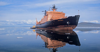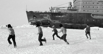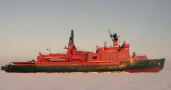 25 апреля 2015 года исполняется 40 лет с принятия в эксплуатацию атомного ледокола «Арктика». 25 апреля 1975 года был принят в эксплуатацию атомный ледокол «Арктика», который в 1977 году стал первым в мире надводным кораблем, достигшим географической точки Северный полюс. Атомоход «Арктика» (с 1982 года по 1986 год — «Леонид Брежнев») — головной корабль серии проекта 10520, был заложен 3 июля 1971 года на стапелях Балтийского завода в Ленинграде (ныне — Санкт-Петербург). Ледокол был создан усилиями коллективов более 400 объединений и предприятий, научно-исследовательских и проектно-конструкторских организаций, в том числе Опытного конструкторского бюро машиностроения им. И. И. Африкантова, Производственного объединения «Маяк», Центрального конструкторского бюро «Айсберг», Научно-исследовательского института атомной энергии им. Курчатова. Впервые участвовал в постройке ледокола и был сдаточной и приемной командой экипаж корабля. Это дало возможность морякам быстро освоить новую технику. Возглавил экипаж опытный ледовый капитан Юрий Кучиев. До этого он проработал в Арктике более 30 лет, плавал почти на всех типах ледоколов. 26 декабря 1972 года судно было спущено на воду, 17 декабря 1974 года завершились ходовые испытания корабля. 25 апреля 1975 года на таллиннском рейде состоялся подъем государственного флага на ледоколе и был подписан акт сдачи-приемки в эксплуатацию судна. Тогда же проводили его в первое самостоятельное плавание в город Мурманск — порт приписки. Ледокол «Арктика» — трехвальный турбоэлектроход с четырьмя палубами, двумя платформами, баком, пятиярусной надстройкой и двумя мачтами. Атомная водо-водяная паропроизводящая установка состояла из двух блоков по одному реактору и четырех парогенераторов в каждом. Она размещалась в специальном отсеке в средней части ледокола. Корпус судна разделен на восемь водонепроницаемых отсеков. Он имеет бочкообразную форму и сделан из высокопрочной лигированной стали, а в местах, подверженных наибольшему воздействию ледовых нагрузок усилен ледовым поясом, что препятствует истиранию корпуса о льды. Полукруглые борта не дают ледовым полям раздавить судно, выталкивая его наверх, а скошенный нос позволяет «заползать» на поля сверху, ломая их своим собственным весом. Толщина борта ледокола — 100 миллиметров. На ледоколе имелись дифферентная и креновая системы. Буксирные операции обеспечивала кормовая электрическая буксирная лебедка. Для ведения ледовой разведки базировался вертолет. Контроль и управление техническими средствами энергетической установки велись автоматически, без постоянной вахты в помещениях центрального отсека, помещениях гребных электродвигателей, электростанциях и у распределительных щитов. Контроль за работой и управление энергетической установкой осуществлялись из центрального поста управления, дополнительное управление гребными электродвигателями выведено в ходовую рубку и кормовой пост. Ходовая рубка расположена на верхнем этаже надстройки и вытянута поперек судна — от борта до борта метров на 25, ширина ее — около пяти метров. Длина ледокола составила 148 метров, ширина — 30 метров, высота борта — около 17 метров, осадка — 11 метров, водоизмещение — 23 тысячи тонн. Мощность атомной паропроизводящей установки превышала 54 мегаватта. Благодаря своим техническим 
