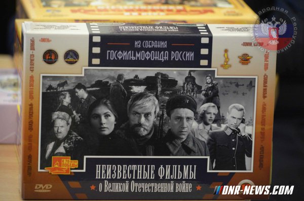 В Донецке 27 апреля в здании Донецкого государственного музыкально-драматического театра представители творческой делегации Союза кинематографистов России и Госфильмофонда РФ передали в дар Министерству культуры ДНР 80 высококачественных дисков с копиями фильмов, составляющих «золотую» коллекцию фонда. «В свой прошлый приезд в Донецк нас отвезли в ваш кинопрокат. И мы увидели, что работа там идет на пределе возможного, а фильмов нормальных нет. Поэтому сегодня Госфильмофонд Российской Федерации передает в подарок 80 фильмов», – сказал в начале церемонии руководитель творческой делегации, народный артист России Клим Лаврентьев. Как отметил первый заместитель генерального директора Госфильмофонда РФ Алексей Елистратов, такие диски с фильмами не поступают в продажу, а существуют лишь в подарочном варианте и их тираж очень ограничен. Среди подаренных фильмов есть всеми любимые мультфильмы; пять фильмов о Первой мировой войне с ее документальной хроникой; первые советские кинокомедии («Девчата», «Мимино», «12 стульев», «Гараж», «Полосатый рейс» и др.); сборник фильмов о женской судьбе («Москва слезам не верит», «Звезда пленительного счастья», «Любимая женщина механика Гаврилова» и т. д.); сказки для детей и взрослых («Айболит-66», «Вий», «Золушка» и т. д.); легендарные фильмы о советских разведчиках («Щит и меч», «Путь в “Сатурн”», «Тегеран-43», «Мертвый сезон» и др.); неизвестные фильмы о Великой Отечественной войне, которые и в России не все зрители даже видели. Все эти кинофильмы будут в нашем кинопрокате показываться на бесплатной основе. «Мы просим, чтобы ни в коем случае не было платных показов. Можете эти фильмы показывать на площадях, но только на безвозмездной основе», – отметил Клим Лаврентьев. Исполняющий обязанности министра культуры ДНР Александр Парецкий заверил, что поддержит инициативу гостей.