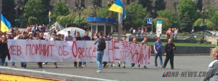 2 мая в центре Киева прошло шествие по случаю годовщины пожара в одесском Доме профсоюзов. Об этом в Facebook сообщил общественный деятель Юрий Кот. Участники шествия прошли по Крещатику с украинскими флагами и транспарантами «Не забудем Одессу! Не забудем, не простим!». По утверждению Кота, участники шествия решили почтить не только память жертв одесской трагедии, но и память недавно убитого журналиста Олеся Бузины.