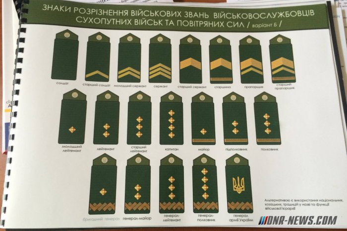 Концепцию новой униформы армии Украины в середине мая представят на рассмотрение президенту и главнокомандующему Петру Порошенко. «Титаническая, кропотливая, бесплатная, как всегда, в нашем случае, работа. Через неделю будут готовы концепции, будут представлены министру обороны и Верховному Главнокомандующему», — отметил Бирюков. В настоящее время пять групп под руководством Виталия Гайдукевича работают над различными концепциями внешнего вида Вооруженных сил Украины. К этому времени в армии Украины, как и в России, принята советская система распознавания званий офицерского состава — по размеру звезд на погонах. Теперь же предлагается различать их по фигурному галуну внизу погона, без изменения размера звезд, которые заменены на «немецкие» ромбы. Кроме того, как и в Германии, ромбы будут стоять в ряд. Кокарду на берете армии Украины, которая представляет собой сплошную эмалированную бляху, планируют заменить на большую объемную фигуру, что также можно увидеть на беретах армии Германии.
