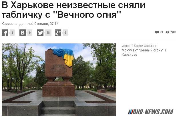 Вандализм продолжается - В Харькове неизвестные сняли табличку с "Вечного огня"