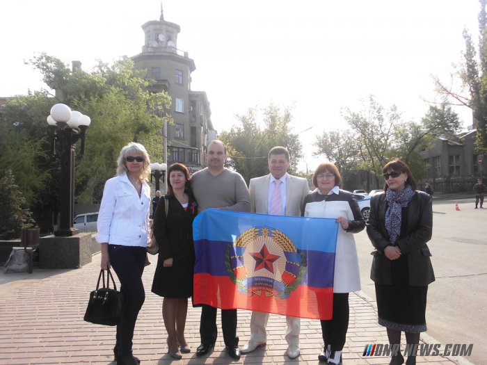 ![]() Мемориал является знаковым и символичным местом для луганчан - именно отсюда в годы Великой Отечественной Войны солдаты уходили на защиту своей земли от немецко-фашистских захватчиков. Почетное право передачи Государственного флага было предоставлено воспитанникам Луганского казачьего кадетского корпуса имени маршала авиации Александра Ефимова. В торжественной обстановке из рук кадетов флаг получили делегаты городов Алчевск, Антрацит, Брянка, Кировск, Краснодон, Красный Луч, Лутугино, Перевальск, Ровеньки, Свердловск, Славяносербск, Стаханов и Луганск, а также их городов-спутников и районных населенных пунктов. "Ценность этого флага очень высока. Это - символ Победы. Так вышло, что этот праздник совпадает с 70-летием Победы – это тоже накладывает свой отпечаток, и патриотизмом сейчас переполнены все, от детей детского сада до стариков. Люди сегодня на подъеме и верят в справедливость, которая все-таки восторжествует" - рассказала заместитель Луганской городской администрации Антонина Кузьменко. "Первый этап победы состоялся, хотя еще идут боевые действия. Люди год назад сделали свой выбор. Переполняет городость за ту правду и волю нашего народа, который голосовал на референдуме, который сегодня грудью защищает наш край, и который выстоит и победит, потому что они борются за светлое будущее, за красивую, правовую нашу Республику" - добавила она. В 12.00 по всей территории ЛНР пройдет общереспубликанское торжественное поднятие Государственного флага – как символа национального единения и общей ответственности за настоящее и будущее Республики. Напомним, что год назад, 11 мая 2014 года, состоялся референдум, на котором жители Луганской области проголосовали за провозглашение независимого от Украины государства - Луганской Народной Республики.