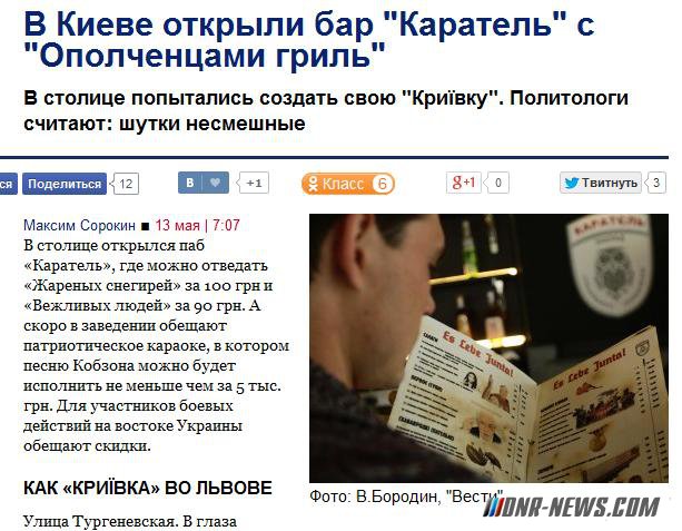 Очередной маразм - В Киеве открыли бар "Каратель" с "Ополченцами гриль"