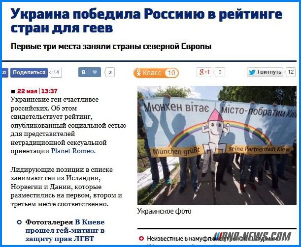 Украинские геи счастливее российских. Об этом свидетельствует рейтинг, опубликованный социальной сетью для представителей нетрадиционной сексуальной ориентации Planet Romeo.