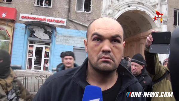 "Защитник" Донецкого аэропорта, подполковник Кузьминых попал в плен к ополченцам в январе. ДНРовцы вскоре проводили в Донецке парад пленных, в котором был и Кузьминых. Источник: dnr-news.com |