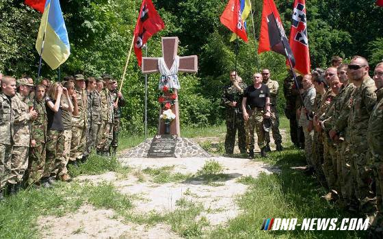 Украинские националисты освятили в Ровно памятник своему сподвижнику Александру Музычко, который больше известен на Украине как Сашко Белый. Напомним, что координатор экстремистского и запрещенного в России решением Верховного суда РФ движения «Правый сектор» Музычко погиб при задержании в Ровенской области 24 марта 2014 года. Ему намеревались предъявить обвинения в хулиганстве и угрозах в отношении сотрудника правоохранительных органов. По некоторым данным, Музычко не оказывал сопротивления, а просто был застрелен по приказу главы МВД Украины Арсена Авакова, которому ранее высказывал угрозы. Дело касалось выходки в суде, когда Музычко демонстрировал в прокуратуре Ровно свой автомат и пытался убедить местного прокурора, используя грубые слова и тумаки, что на него не распространяются предусмотренные законодательством ограничения. Украинские националисты не скрывают своей скорби по погибшему товарищу. «Легендарный УНСОвец Сашко Белый (Александр Музычко) стал символом возрожденного национализма, который бросил вызов либерально-коммунистическим проектам», — сообщает Информационный центр УНСО. «Никаких толерантных провокаций, никакого пацифизма, никаких договоренностей с оккупантами, сепаратистами и их приспешниками», — перечисляют «лучшие» стороны Музычко его соратники. По их словам, «за это и убила его продажная неизлечимо больная коррумпированная система». Члены УНСО предупреждают, что «искренние патриоты не забыли это мерзкое преступление, пусть никто не имеет по этому поводу иллюзий». «Дело Александра Музычко — путеводный знак для армии молодых патриотов, закаленных в горниле борьбы с генетическим мусором», — считают националисты, пришедшие почтить его память на Аллею Славы, где торжественно был освещен памятник украинскому «герою». Источник: dnr-news.com |