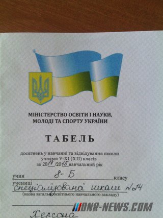 Помимо русского языка в школьном табеле переименована и русская литература. В школах Украины переименовали предмет русский язык.Русский язык и литература в табелях стали обозначать языком национальных меньшинств. Табель ученика 8-го класса школы г. Херсон.
