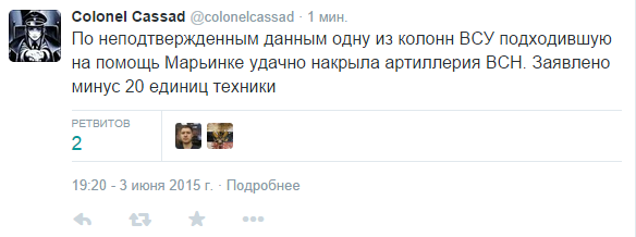 Также Colonel Cassad сообщил, что одна из колонн ВСУ уже ликвидирована ополчением. Правда эта информация нуждается в подтверждении.