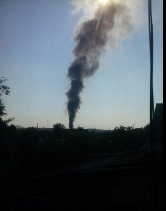 В Сети появилось видео, на котором виден столб дыма, образовавшийся во время перекрестного огня в районе Марьинки. По данным из информированных источников горит конно-спортивный комплекс «Эквицентр». Украинские СМИ со своей стороны, пишут, что это горит база ополчения. Ополчение в свою очередь заявляет, что им удалось поджечь склад украинских войск.