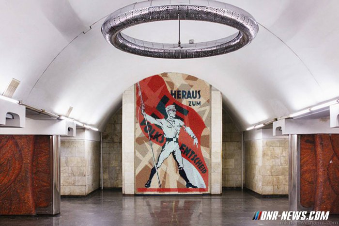 На размещенных фото советские символы заменены на символику гитлеровцев. Украинские пользователи Facebook обсуждают ситуацию, при которой здания и метрополитен украинских городов украшала бы фашистская символика, а не советская. Пост с символическими фотографиями разместила на своей странице в Facebook жительница Львова Olha Salo. «Представьте себе: каждое утро дорога на работу, и в метро такое», — написала девушка.