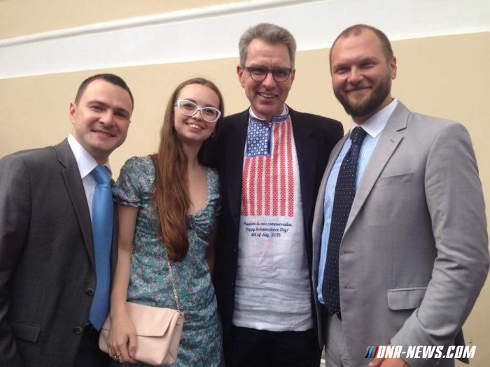 Украинские дипломаты подарили послу США в Украине Джеффри Пайетту по случаю Дня Независимости от дипломатов МИД Украины вышиванку с флагом США. Об этом говорится в сообщении МИД Украины в facebook, где также расположено фото Пайетта в вышиванке с флагом США. «Нынешнее поздравление и подарок Послу США в Украине Джеффри Пайетту по случаю Дня Независимости от дипломатов МИД Украины», — сообщает украинский МИД. Источник: dnr-news.com |