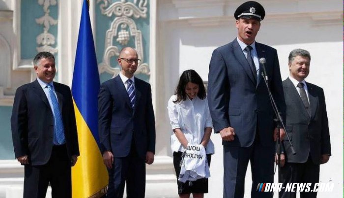 В Киеве во время церемонии принятия присяги личным составом патрульной полиции мэр столицы Виталий Кличко выступал в полицейской фуражке. Позади Кличко стояли президент Петр Порошенко, премьер-министр Арсений Яценюк, министр внутренних дел Арсен Аваков и его заместитель Эка Згуладзе, которые безудержно смеялись во время выступления мэра. В ходе своего выступления Кличко, в частности, заявил, что патрульные полицейские имеют достаточно высокую зарплату, чтобы не брать взяток. Как сообщалось, 4 июля новые патрульные Киева приняли присягу на Софиевской площади. Источник: dnr-news.com |