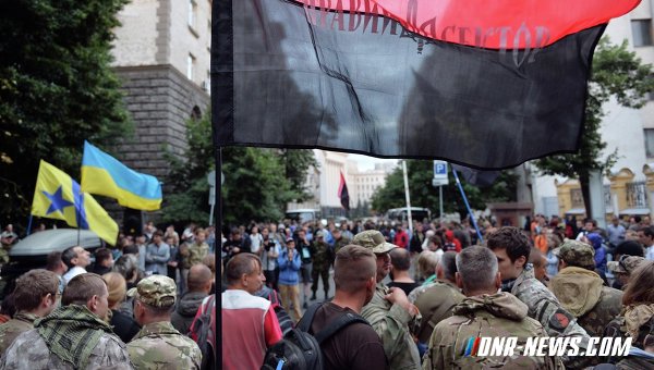 Представители подразделений украинских добровольческих батальонов "Айдар", "Азов", "ОУН" и "Торнадо" присоединились к акции протеста экстремистской организации "Правый сектор", которая уже третий день проходит у здания администрации президента Украины, сообщает телеканал "112 Украина". "К этой акции… присоединились еще и другие добровольческие батальоны, это, в частности, "Айдар", "Азов", "ОУН" и представители добровольческого батальона "Торнадо". Здесь уже обустроили полевую кухню, поставили ящики, собирают деньги, чтобы пополнять свои запасы продовольствия. На дороге протестующие зажгли свечи в память о погибших в Мукачево", — рассказывает журналист телеканала. Источник: dnr-news.com |