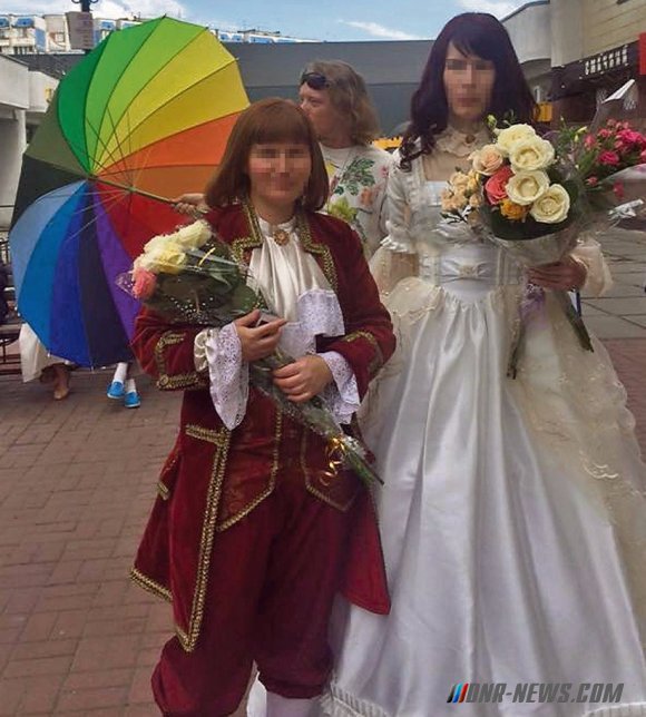 В ЗАГСе Деснянского района столицы произошло бракосочетание между транссексуалом и лесбиянкой Как сообщили знакомые супругов, присутствовавшие на бракосочетании, заявление пара подавала заблаговременно: «Ближе к дате, так как они оба нетрадиционной ориентации, решили одеться каждый согласно своей роли в семье. Кроме того, хотелось посмотреть на реакцию сотрудников ЗАГСа». По словам одной из сотрудниц Деснянского районного ЗАГСа, где проходила регистрация, подобных случаев у них еще не было. Транссексуал был одет в свадебное платье, лесбиянка в костюм жениха. При этом по закону брак является легитимным, поскольку в брачный союз вступили мужчина и женщина. Молодожены отказались комментировать свои отношения. Источник: dnr-news.com |
