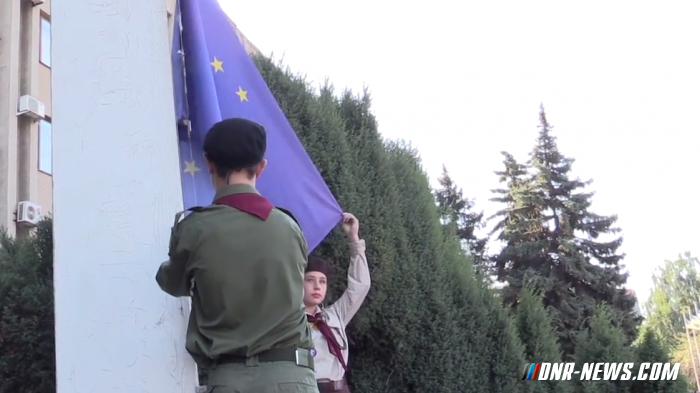 В Славянске торжественно подняли флаги Украины и Евросоюза