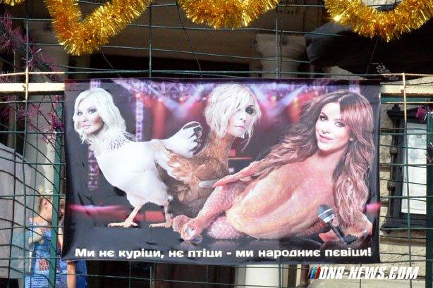 23 сентября во Львове высмеяли деятельность народных артисток Украины Ани Лорак, Таисии Повалий и Ирины Билык. На площади перед театром оперы и балета им. С. Крушельницкой активисты посадили в клетку трех кур с портретами певиц на шее. На клетку повесили надпись "Мы не курицы, не птицы, мы - народные певицы". В мегафон просили обратить внимание на народных артисток, которые опозорили свои звания, выступая на российских сценах. Акцию организовали представители Экономического бойкотного движения, Галицкой крепости и Волонтерского полка. С собой принесли плакаты "Долой коллаборационистов с Украинской сцены". Протест провели возле Оперного театра, потому что именно сюда в свое время приглашали Ани Лорак. "Акция направлена на то, чтобы вообще отменить звание "народный артист Украины", которое было дискредитировано такими курицами как Лорак, Повалий и Билык. Пока такие звания носят Кобзон, Киркоров, то это - позор. В целом свете нет никаких народных артистов, которым присваивают звание чиновники через бани сауны и деньги", - заявил организатор Экономического бойкотного движения Олег Радык.