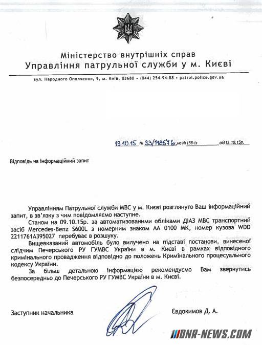 Управление патрульной службы Киева официально подтвердило, что бывший премьер-министр Украины Юлия Тимошенко ездила на автомобиле, угнанном из автопарка экс-президента страны Виктора Януковича. Ответ на соответствующий запрос опубликован в Facebook движения «Евромайдан». Отмечается, что речь идёт об автомобиле Мercedes Benz S600 Limousine Lang чёрного цвета. На запрос в патрульной полиции Киева ответили, что данный автомобиль находится в розыске. Источник: dnr-news.com |