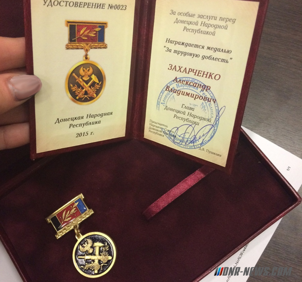 В среду, 4 ноября 2015 года, в Дебальцево Глава Донецкой Народной Республики Александр Захарченко был представлен к награждению медалью Народного Совета «За трудовую доблесть». Награду вручал Председатель Народного Совета Денис Пушилин. «В Донецкой Народной Республике есть человек, отличившийся на всех фронтах – и на военном фронте и на мирном. Именно под руководством Главы ДНР в Республике начат сбор налогов, запущена экономика, выплачиваются пенсии и социальные пособия, зарплаты бюджетникам. Учитывая все заслуги Александра Владимировича Захарченко, Народный Совет постановил наградить Главу медалью «За трудовую доблесть»!», — заявил Председатель Народного Совета. В свою очередь, Глава Республики отметил, что данная награда принадлежит трудовому народу Донбасса, и принять ее он не может. Захарченко предложил отложить награждение до подведения итогов его работы в целом. Также в рамках рабочей поездки в Дебальцево, первые лица Республики приняли участие в ряде мероприятий, в том числе в церемонии открытия мемориала погибшим ополченцам и торжественном открытии «Первого республиканского супермаркета». По словам Захарченко, власти Республики должны сделать все возможное, чтобы увековечить память тех, кто защищал Дебальцево, и обеспечить достойную жизнь тем, кто живет в городе сейчас. «Дебальцево – город-герой, символ стойкости наших людей. Нам очень важно сохранить память о тех, кто погиб, защищая свой город, свою Родину», — отметил Глава Республики.